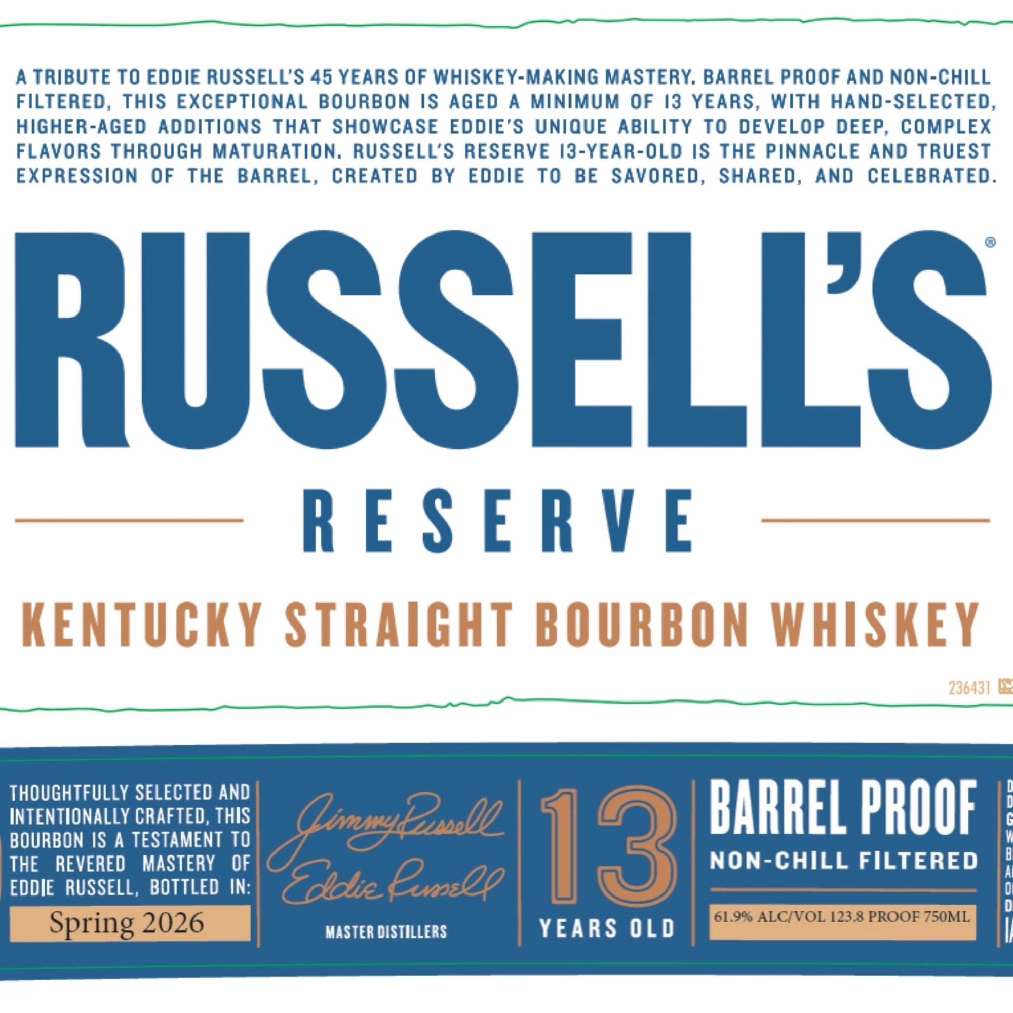 Aged a minimum of 13 years, with select barrels reaching even greater maturity, this release showcases Eddie Russell’s unparalleled ability to coax depth, balance, and complexity through extended barrel aging. Each hand-selected barrel reflects decades of experience, resulting in a bourbon that is bold, layered, and profoundly expressive of the barrel itself.